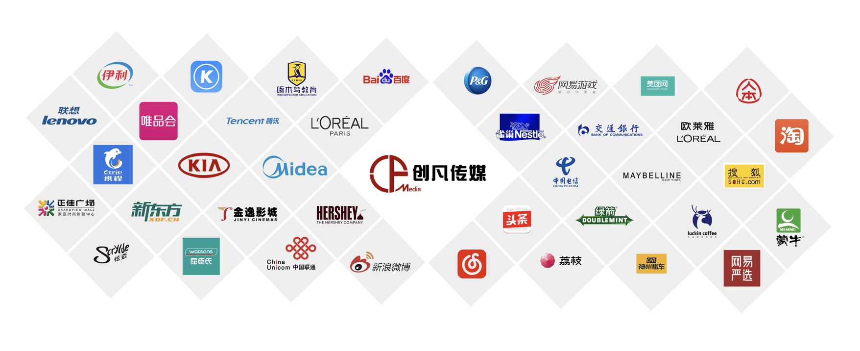 公司以“做品牌年輕化的好幫手”為使命,憑借敏銳的創(chuàng)意洞察、卓越的營銷策劃能力、豐富的活動經驗和全方位的媒體資源,為企業提供高效、精準的一站式營銷推廣服務。已成為寶潔、騰訊、京東、中國聯通、字節(jié)跳動等世界500強品牌庫內供應商。